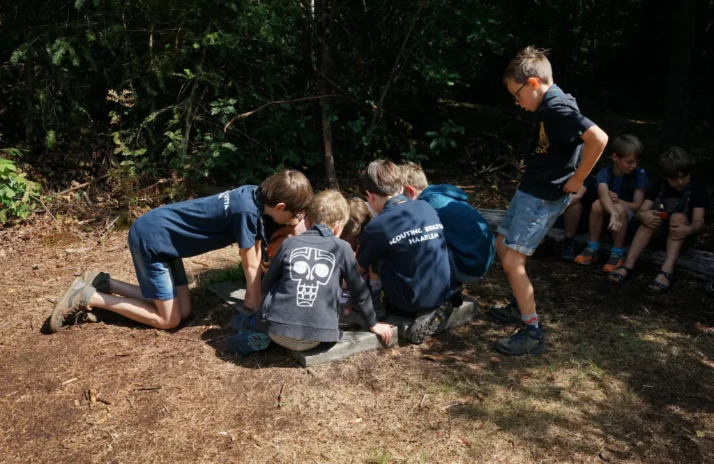 Nu ontwaken de welpen met ietwat verzuurde benen, maar het was het zeker waard! De welpen staan te springen om hun nieuw gevonden foto af te geven aan de professor. Bij de opening gebeurt er alleen iets geks.. Onze eigen vlag is vervangen door een vlag van STOM! Deze handlangers maken het steeds bonter met hun streken. Gelukkig laat de professor en wij ons niet zomaar kisten dus gaan we verder met de orde van de dag.